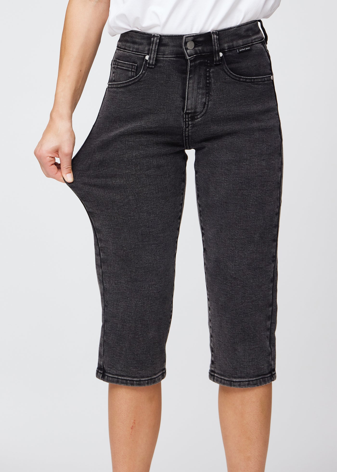 Perfect Capris - Regular - Shadows are the perfect dark gray regular capris for women, in a beautiful denim look. Here you get our innovative denim with lots of comfort and freedom of movement. Our dark gray regular capris are ¾ length and go just below the knee. They are tight at the waist, while they are looser at the hips and around the thigh. The modern gray denim capris are high-waisted and are designed with two deep pockets both in the front and back. With unmatched mobility, they are perfect for any lifestyle.