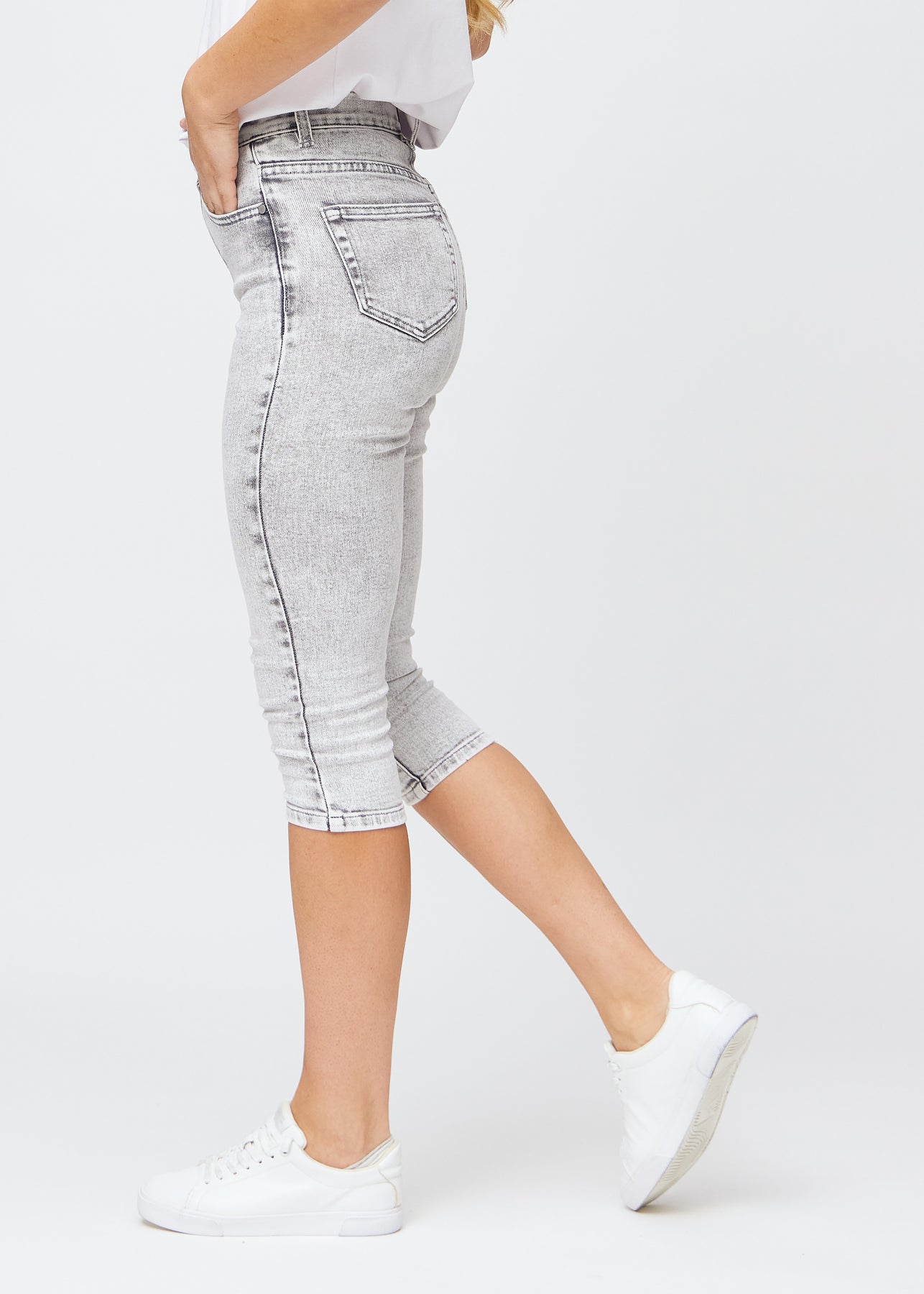 With Perfect Capris - Skinny - Ashes, you get a pair of light gray capris for women, in a beautiful denim look. Our denim is developed with a special weave, making them stretchy, comfortable, and soft, so you can experience optimal comfort all day. Our skinny capris are high-waisted and are our most form-fitting capris model, designed with two deep pockets both in the front and back. The modern gray denim capris retain their color and shape after washing and wearing, and are perfect for all occasions and activities.